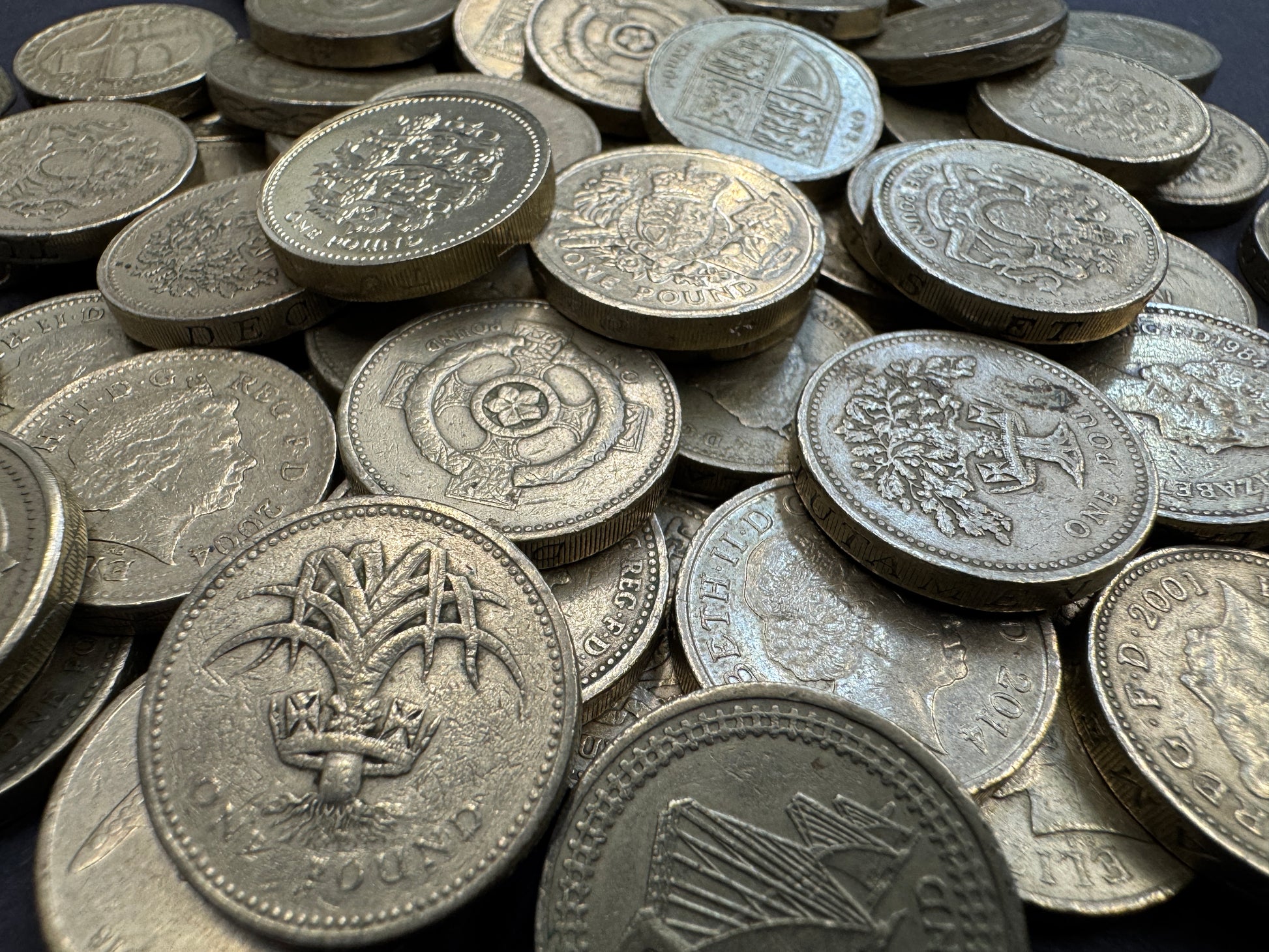 Old Round Pound Coins From The United Kingdom