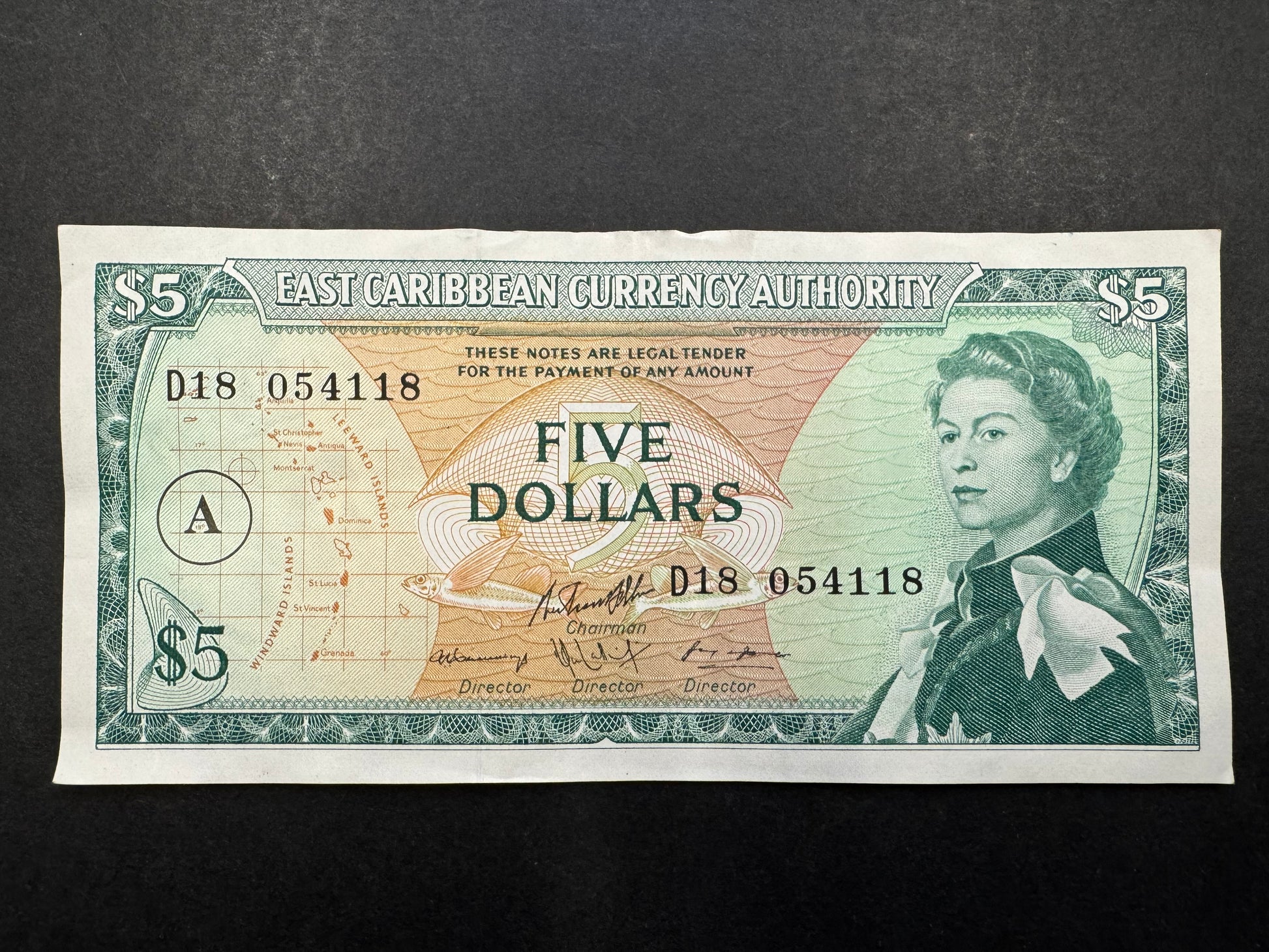 Rare $5 Dollars Banknote From The East Caribbean Currency Authority (Issued in 1965)